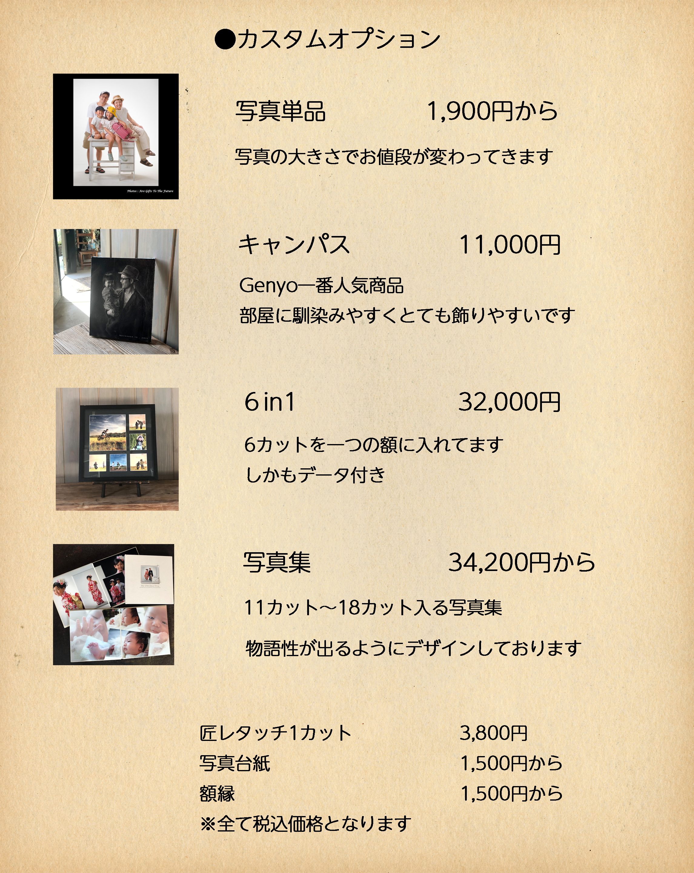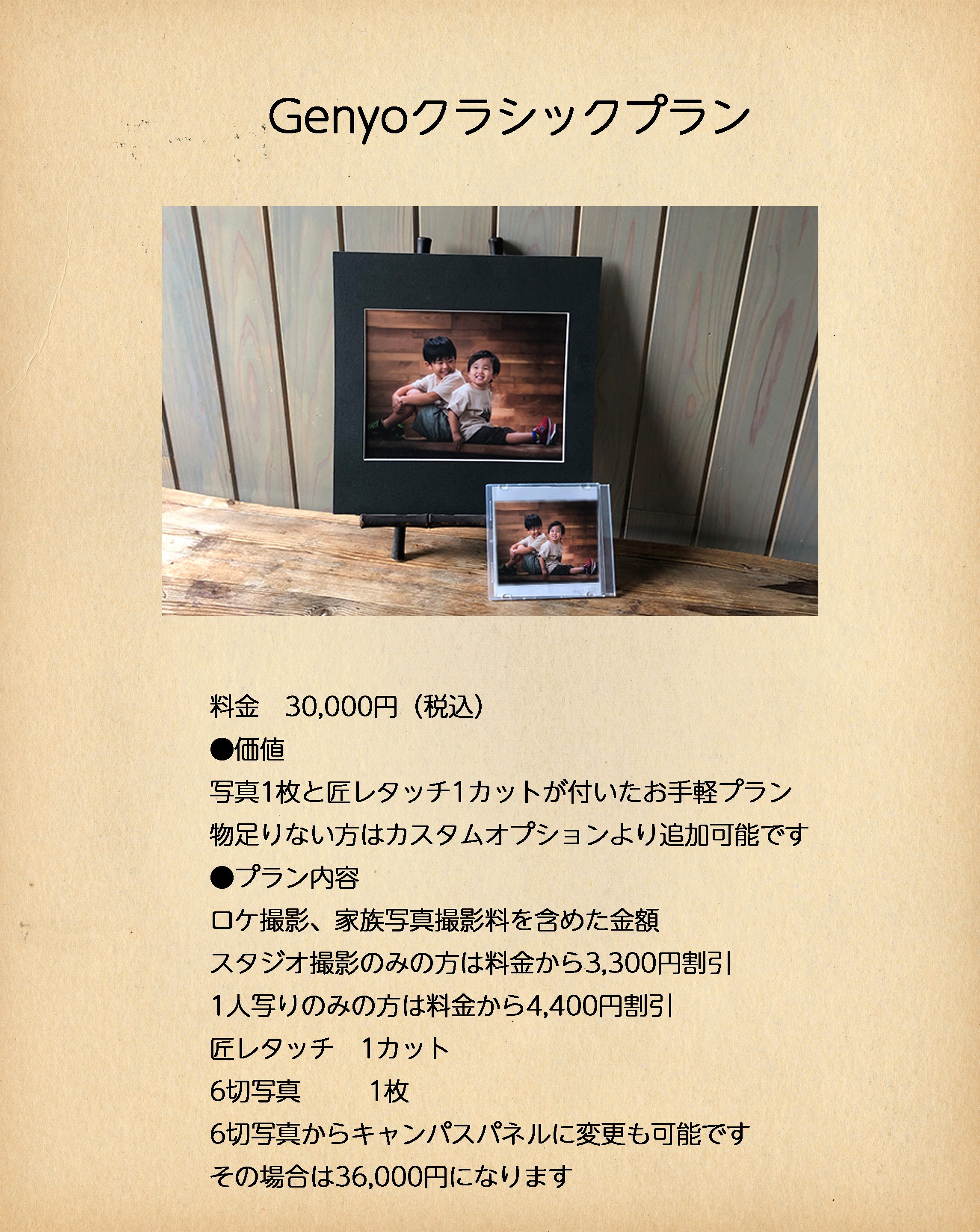 全てのプランに匠レタッチ写真が含まれています。匠レタッチでは細部までこだわり写真から出てくるGenyoならではの「情感」「感情」「趣」をぜひご体感ください(匠レタッチ枚数はプランによって異なります)